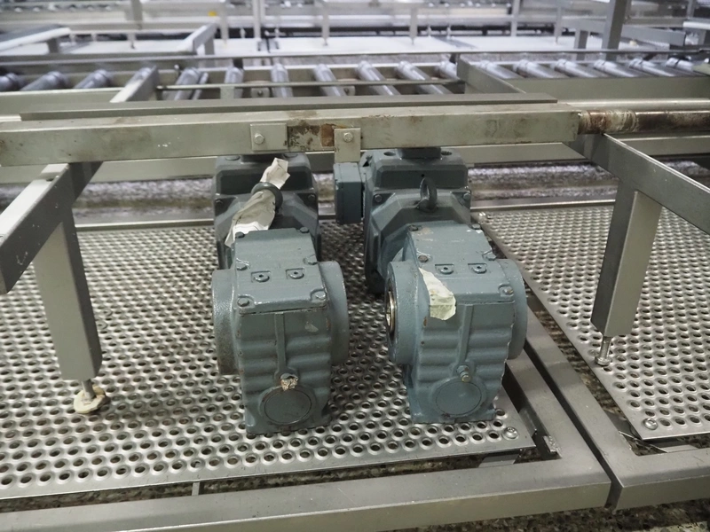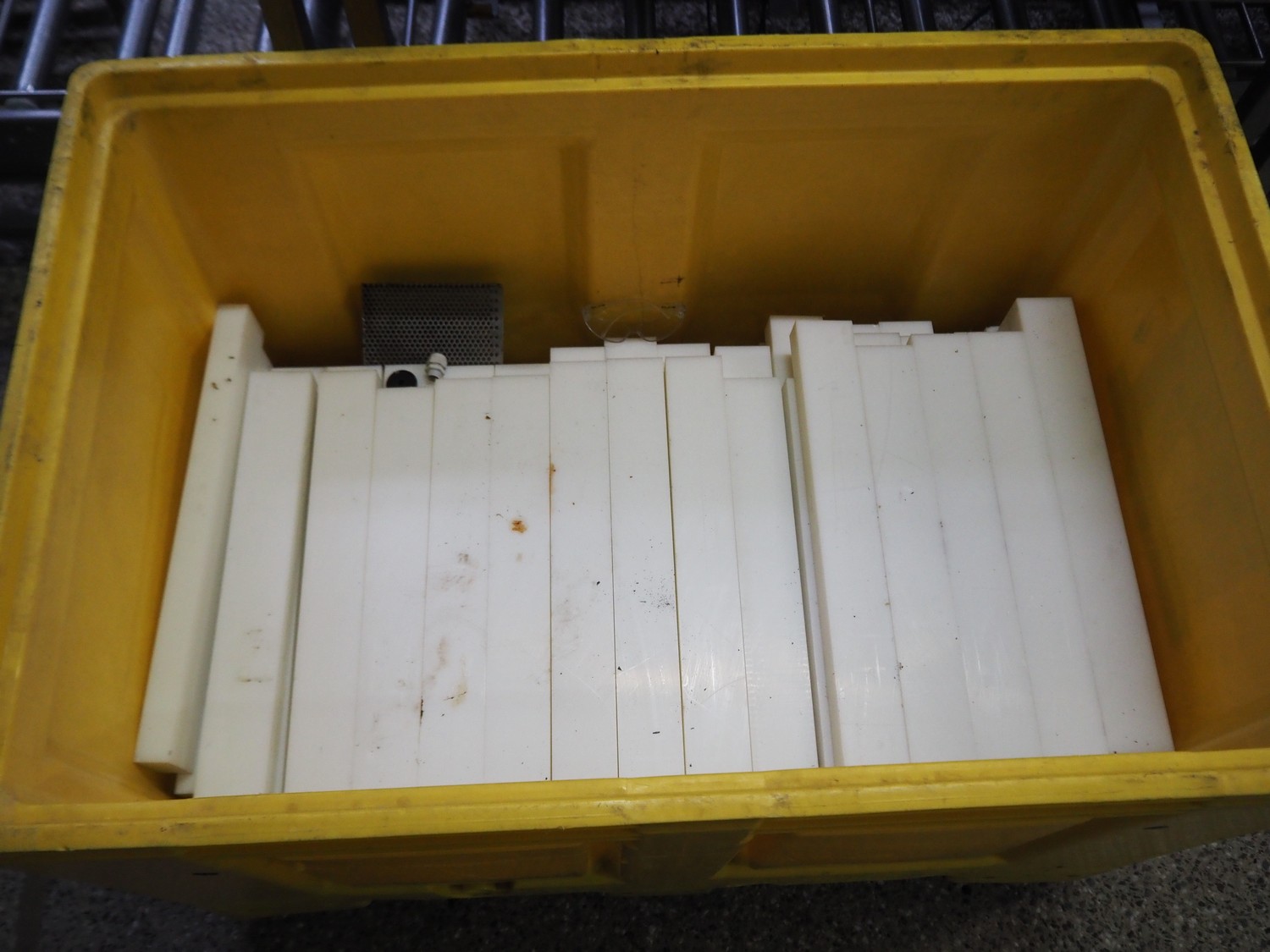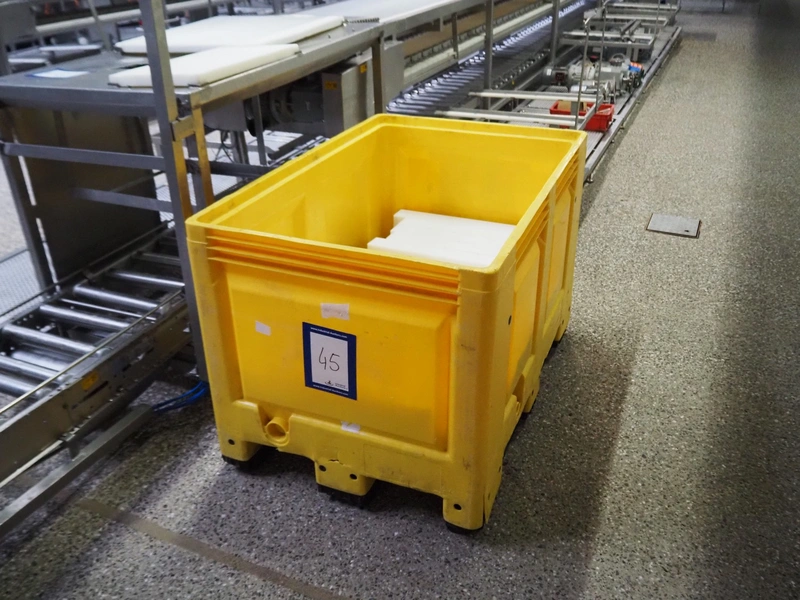 Plastic pallet box with parts for the deboning, dimensions: 1200 mm x 800 mm x 800 mm.