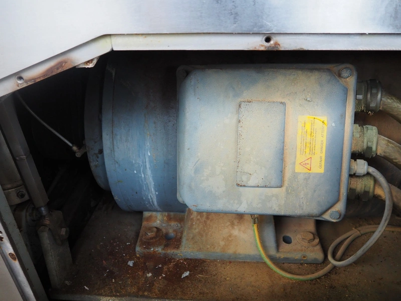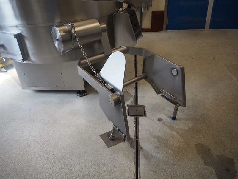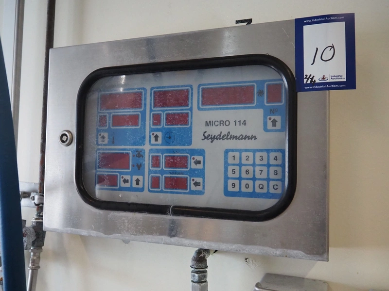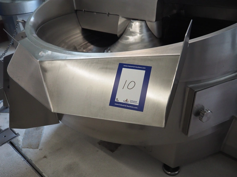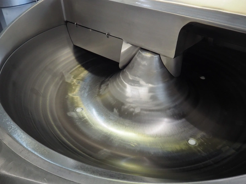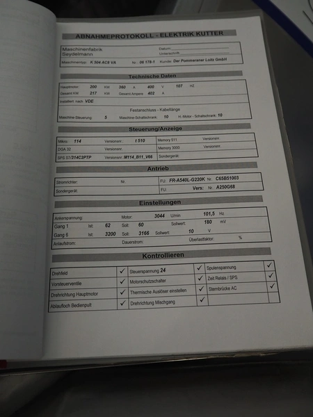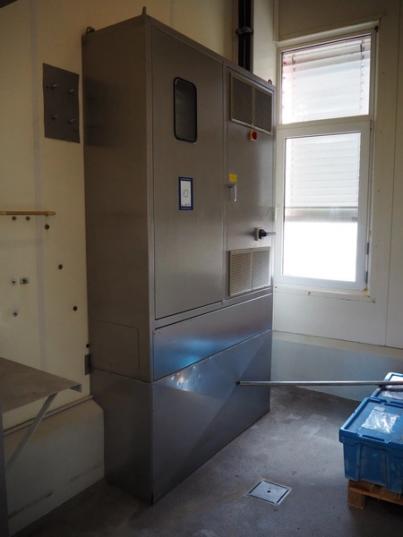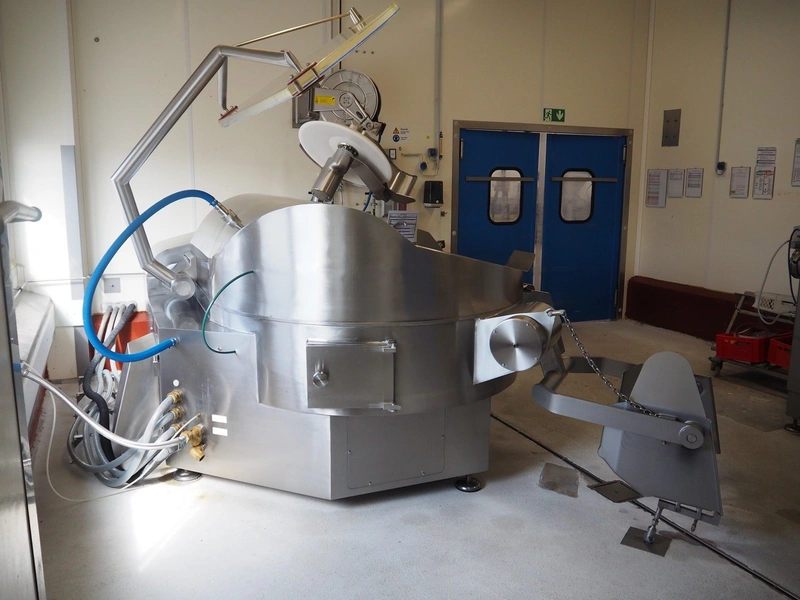 Seydelmann vacuum cutter with lifter for 200 liter meat bins and ejector, type: K504 AC8 VA, machine number: 06180-1, year of construction: 2006, 400 V, 50 Hz, 402 A, 217 kW, s/s bowl, volume: 500 liter, dimensions: 3500 mm x 3100 mm x 2200 mm, dimensions control panel: 470 mm x 90 mm x 320 mm, dimensions switch cabinet: 1600 mm x 550 mm x 2800 mm. Including pallet with extra cutter knives, dimensions: 1200 mm x 800 mm x 700 mm.