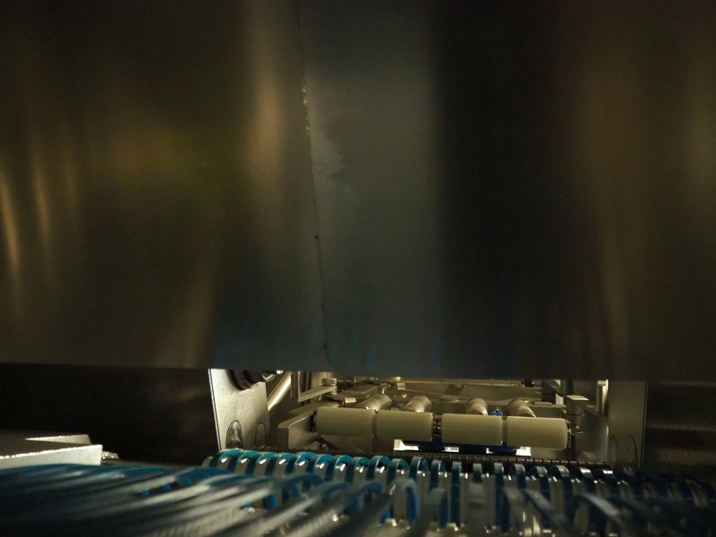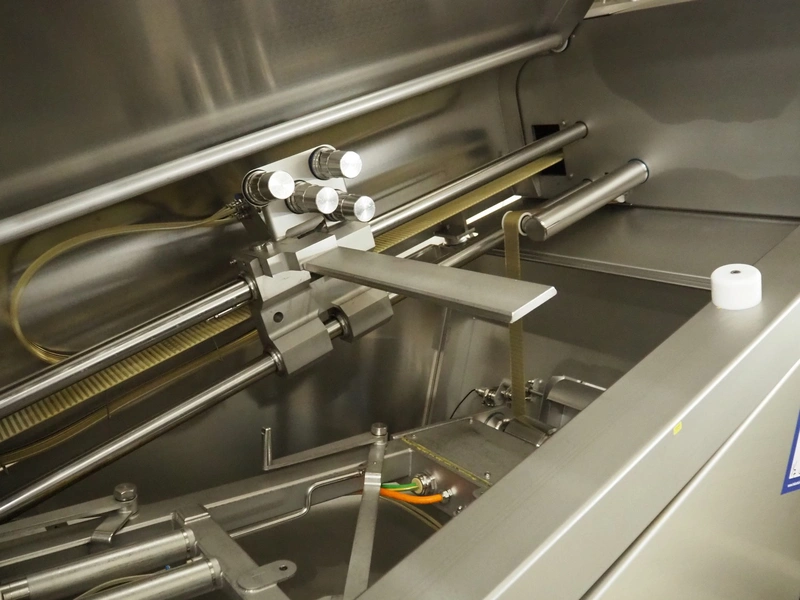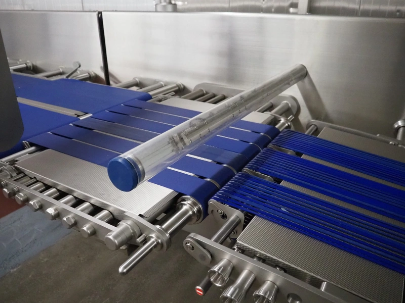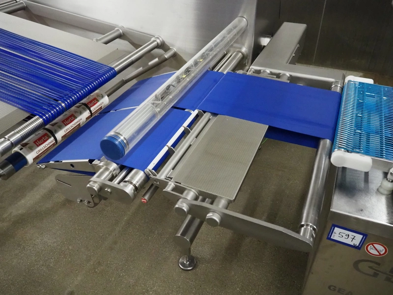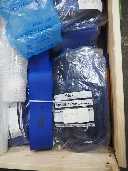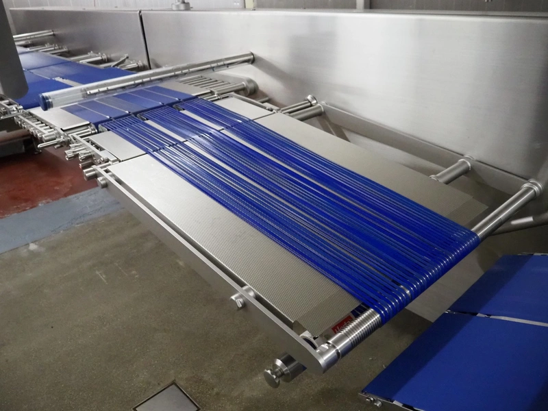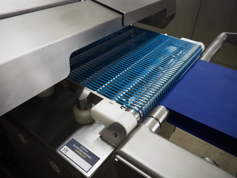 - GEA outfeed belt, type: GEA ShingleLoader 700, serial number: 4040880404, year of construction: 2012, 400 V, 3 Ph, 30 A, plastic belt, belt width: (11x) 350 mm, (6x) 80 mm, plastic wire belt, belt width: (1x) 480 mm, (2x) 260 mm, total dimensions: 8370 mm x 1800 mm x 2100 mm.