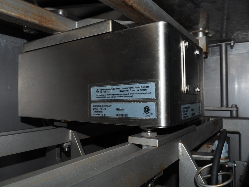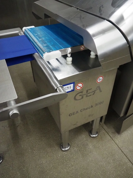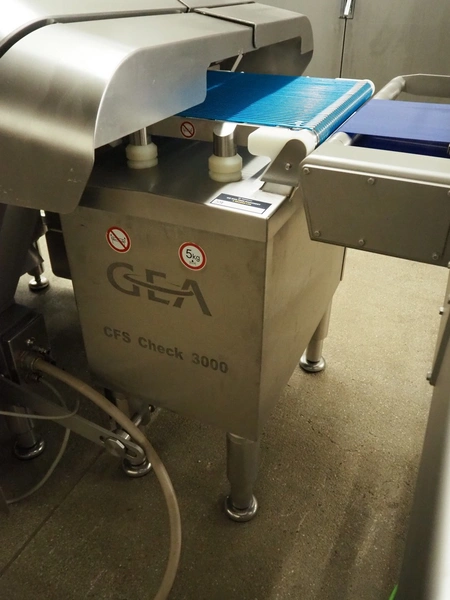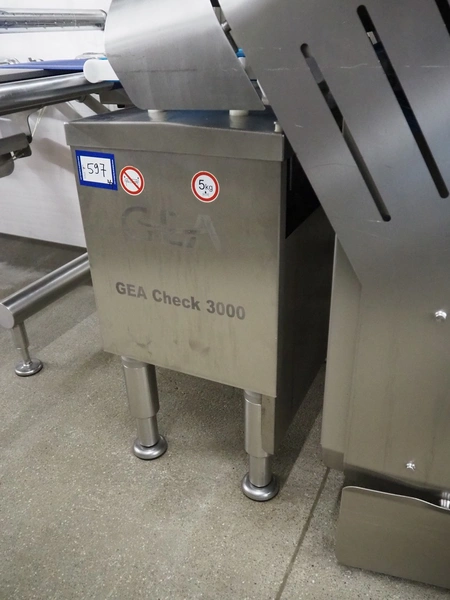 - GEA CFS checkweigher, type: Check 3000, Sartorius AG weighing element, type: WZGP-10-S, serial number: 28206865, plastic wire belt, belt width: 500 mm, total dimensions: 550 mm x 750 mm x 1050 mm.