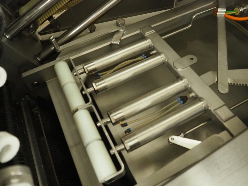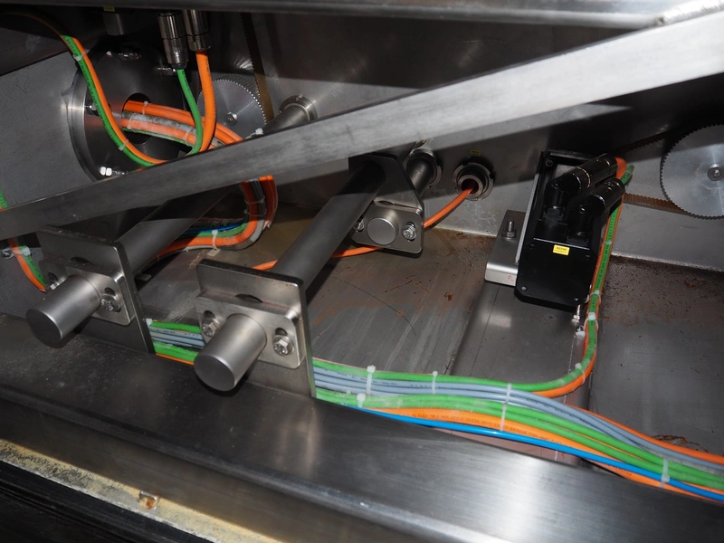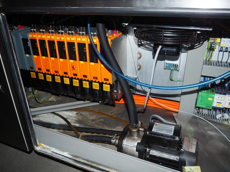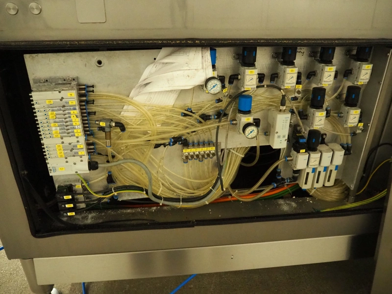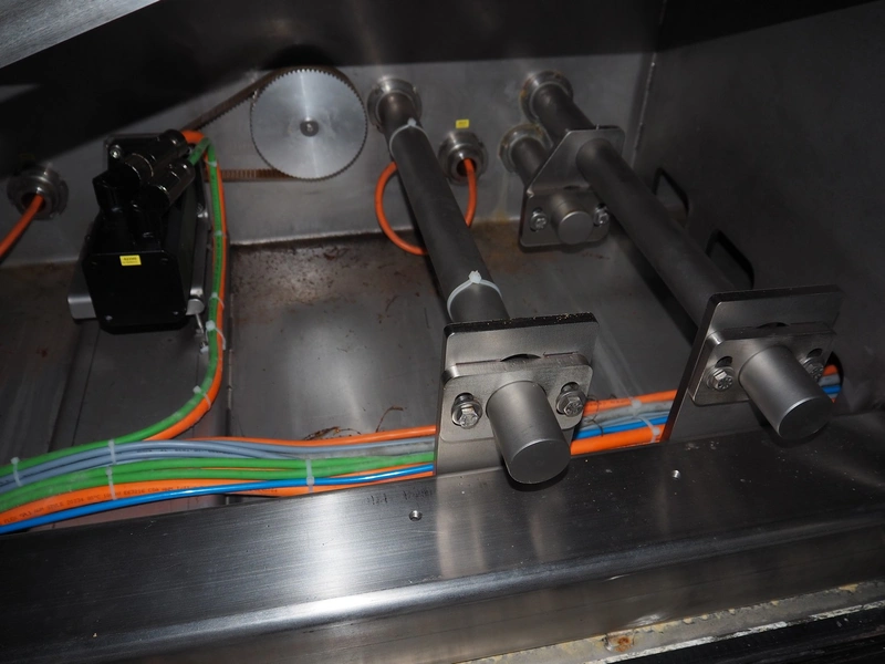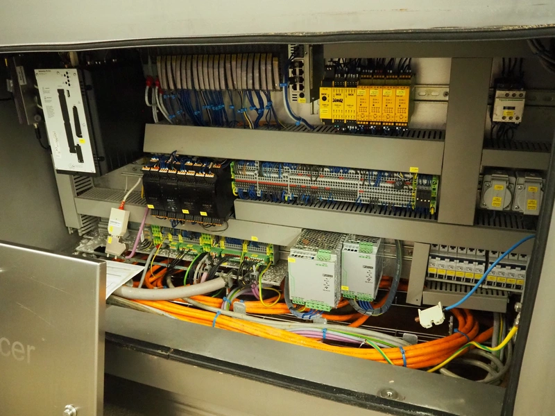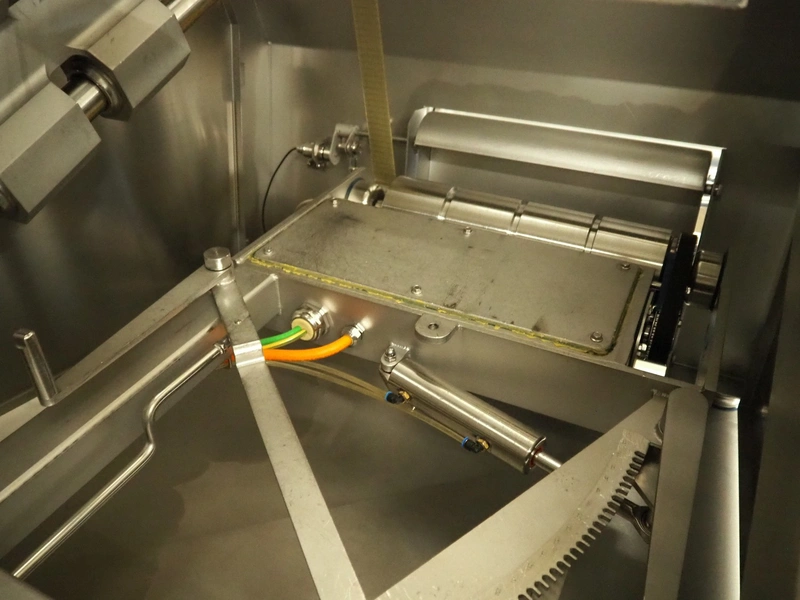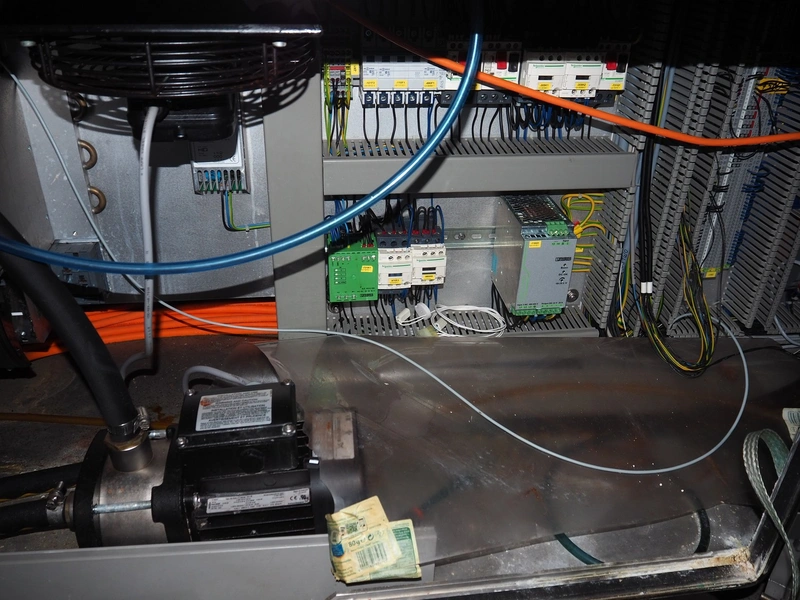 - Gea slicer, type: MegaSlicer, serial number: 4044622871, year of construction: 2012, 400 V, 3 Ph, 50/60 Hz, 23 A, 15.5 kW, plastic infeed belt, belt width: (3x) 100 mm, clearance: 530 mm x 230 mm, wire belt width: 500 mm, total dimensions: 4050 mm x 1200 mm x 2450 mm.