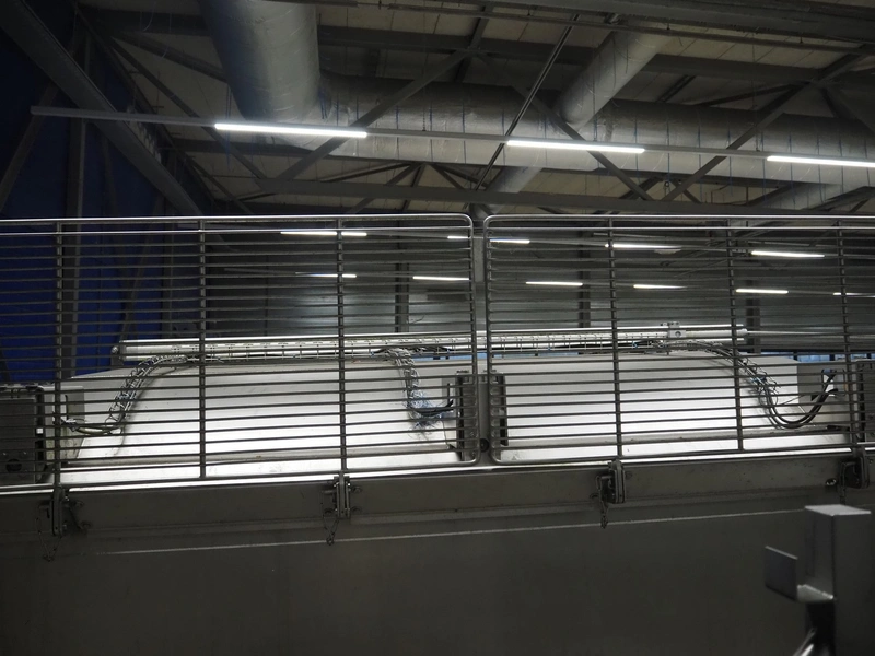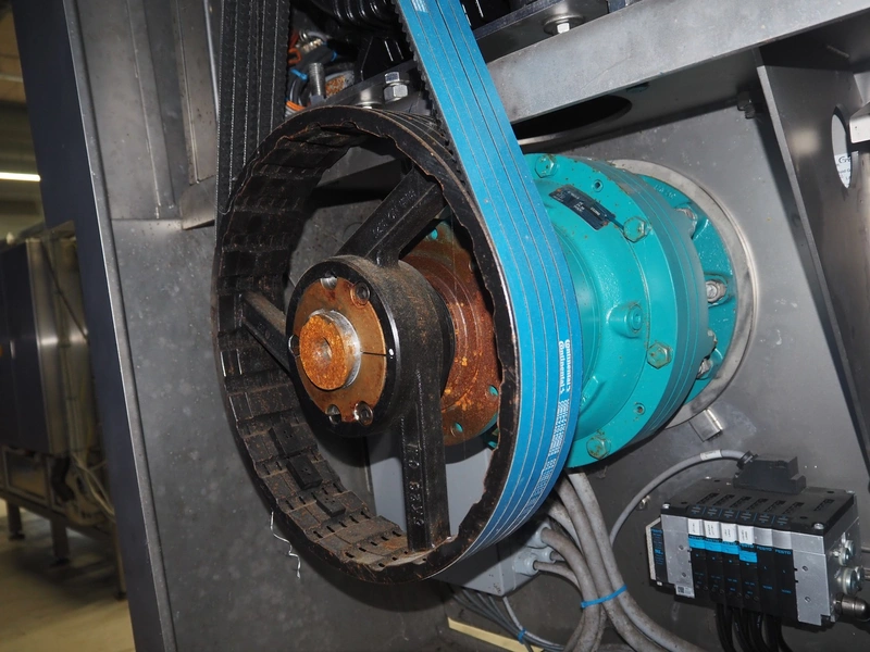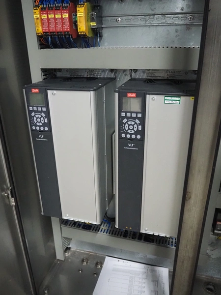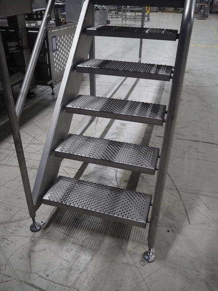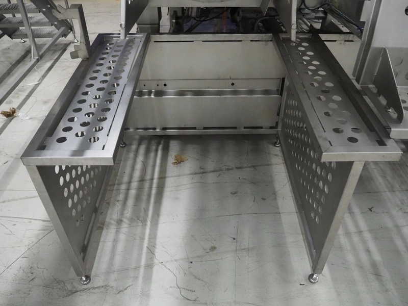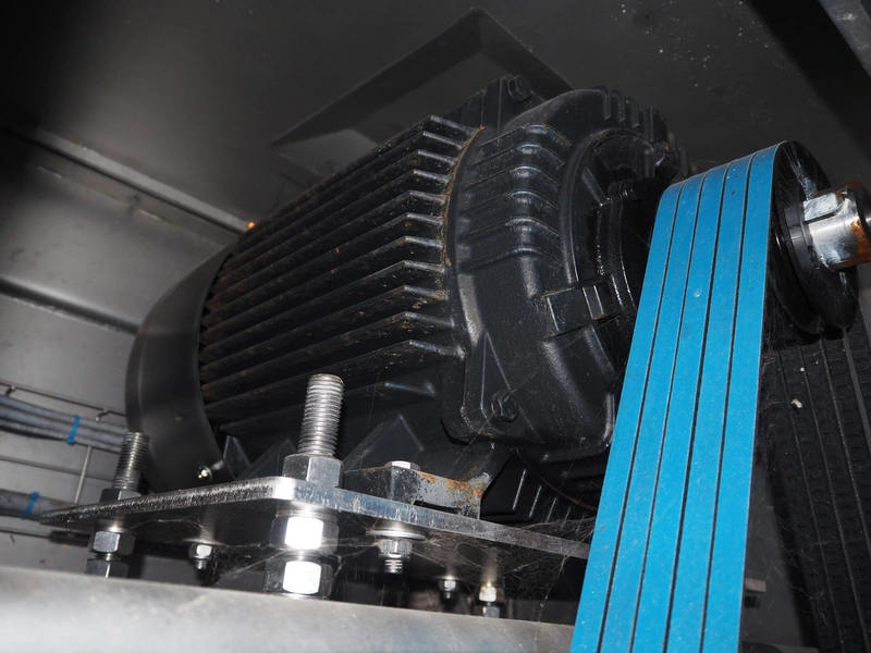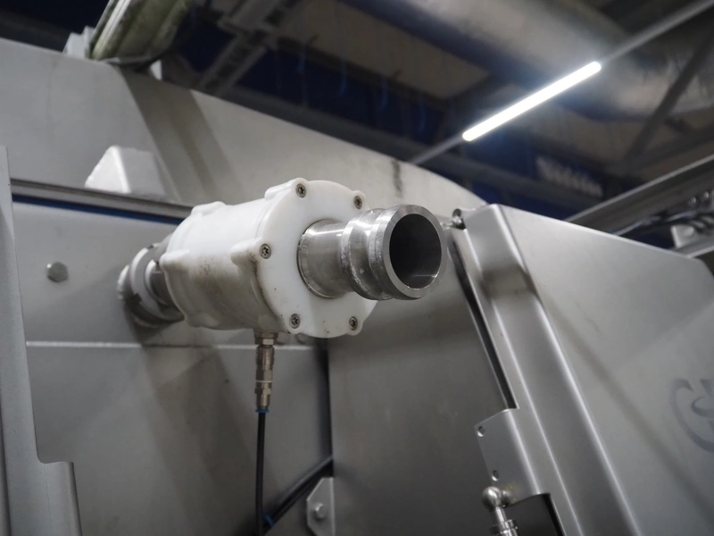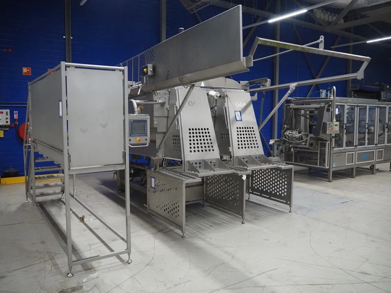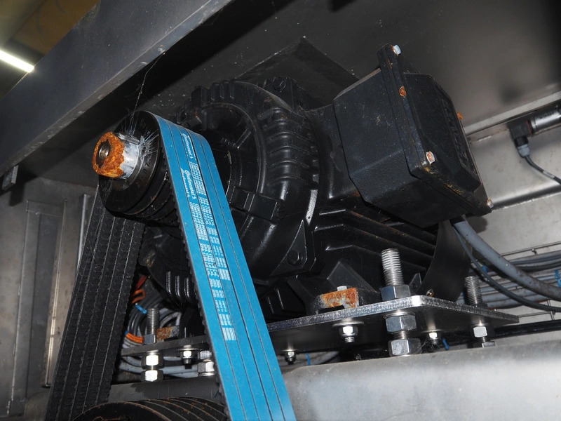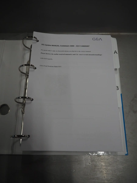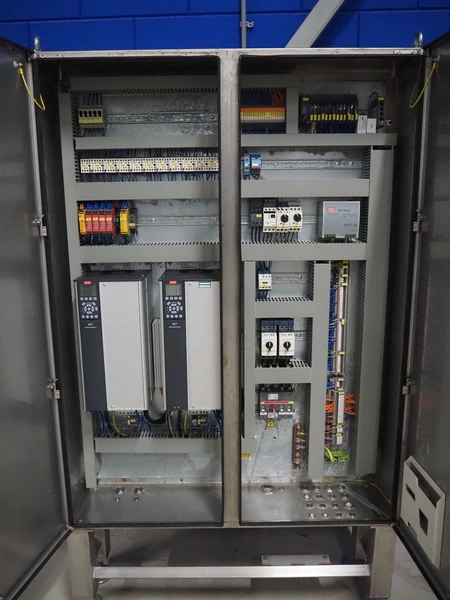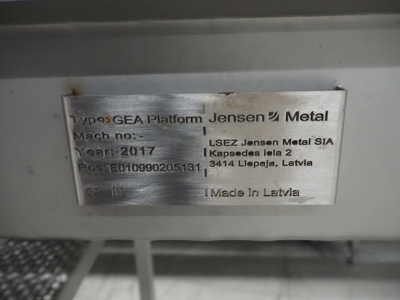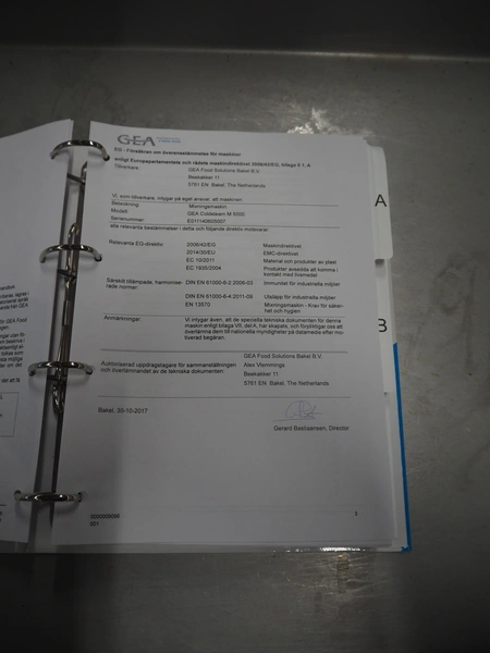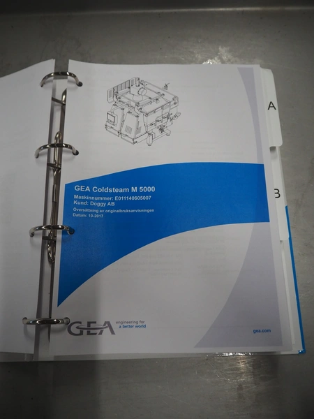 GEA Food Solutions vacuum mixer on weighing cells for tempering frozen meat, type: GEA Coldsteam M 5000, machine number: E011140605007, year of construction: 2017, 380-415 V, 3 Ph, 50 Hz, 82 A, 45 kW, volume: 5000 liter, dimensions: 5700 mm x 2600 mm x 2800 mm. With s/s platform, dimensions platform: 3600 mm x 700 mm x 2300 mm, s/s switch cabinet, dimensions: 1200 mm x 480 mm x 2100 mm, and Busch vacuum pump, type: RA 0302, capacity: 300 m³ per hour, dimensions: 1200 mm x 800 mm x 700 mm.