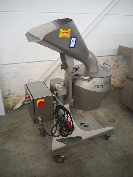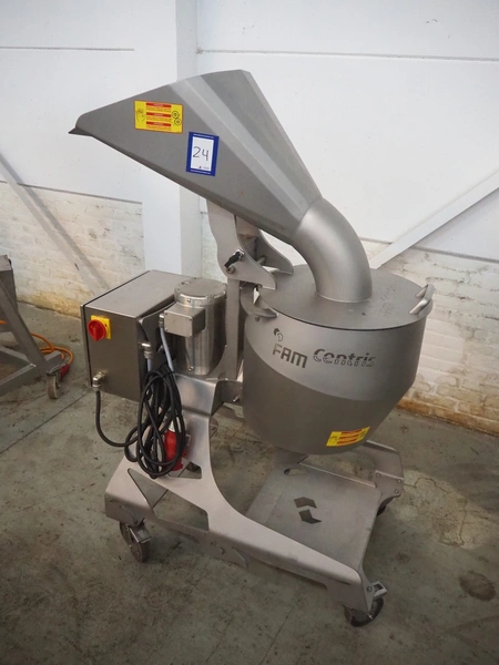 FAM mobile slicer, model: Centris, type: 315, number: 10983, year of construction: 2017, 400 V, 3 Ph, 50 Hz, 3.7 A, 0.75 kW, weight: 135 kg, dimensions: 1090 mm x 600 mm x 1530 mm.