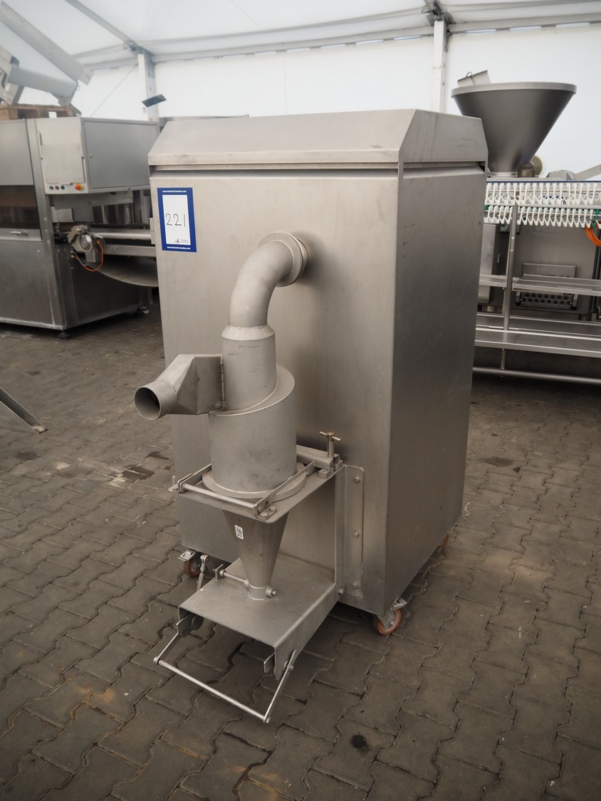 Frey Maschinenbau GmbH vacuum filling machine with lifter for 200 liter meat bins, model: F-LINE F222, with grinding attachment, di…€ 12.500,000 bids28/04/2026 15:00 -